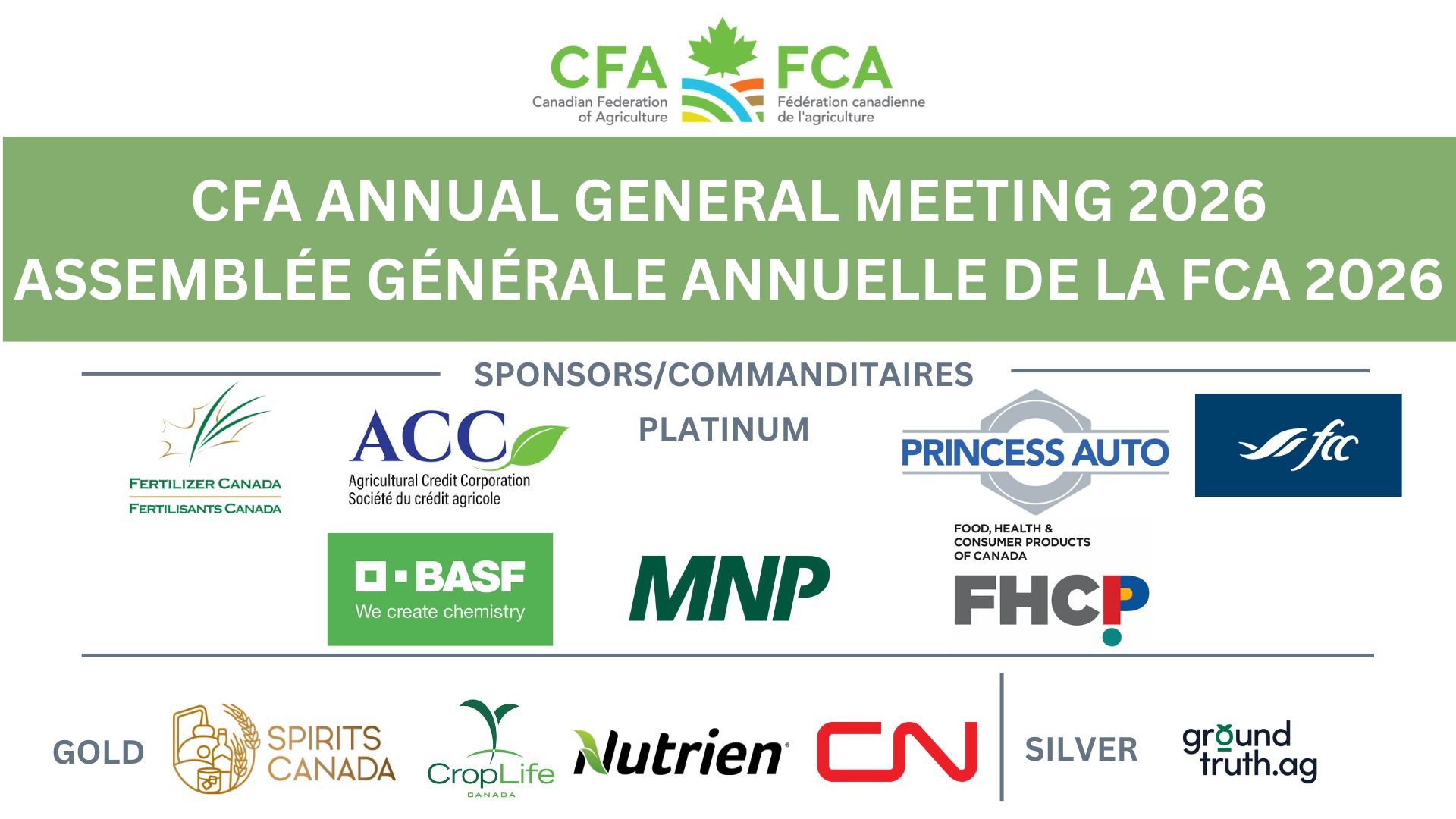 The Canadian Federation of Agriculture’s (CFA) Annual General Meeting is taking place from February 24-25, 2026 at the Delta City Centre Hotel in Ottawa, ON.
