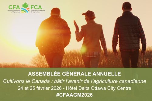 L’assemblée générale annuelle de la FCA rassemble des leaders agricoles de partout au Canada afin d’établir les priorités du secteur agricole canadien pour l’année à venir. Cliquez ici pour en savoir plus et vous inscrire dès aujourd’hui!